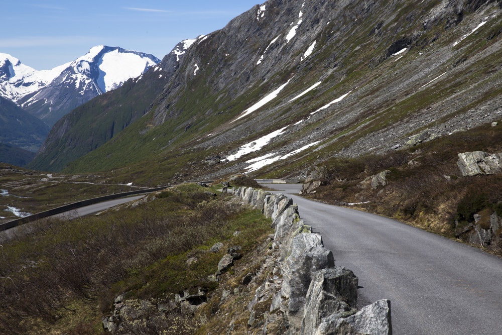 STRYNEDAMA: Oppe til venstre i bildet ser du Strynedama. En skygge med flotte linjer. Hun er finest rett før lunsj. Fra ca. 12:10 begynner hun å bli dvask og på ettermiddagen er hun gravid. Et landemerke som mange Strynefantaster for lengst har fått med seg. Foto: Hans Petter Hval