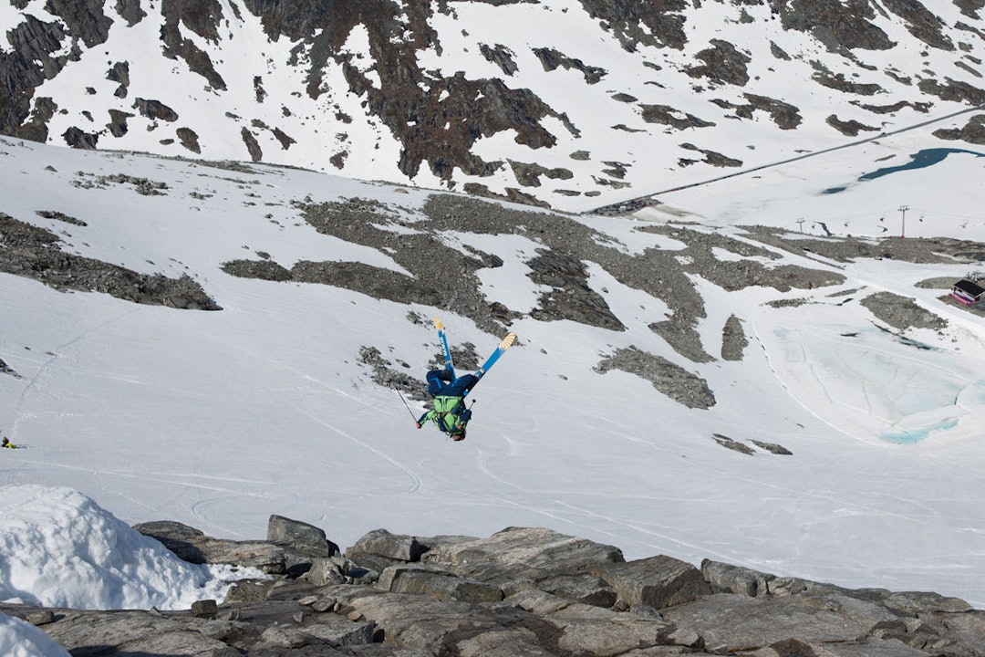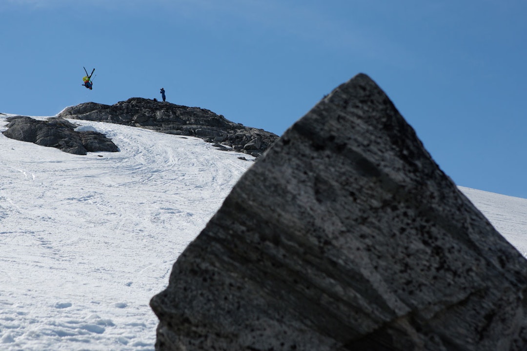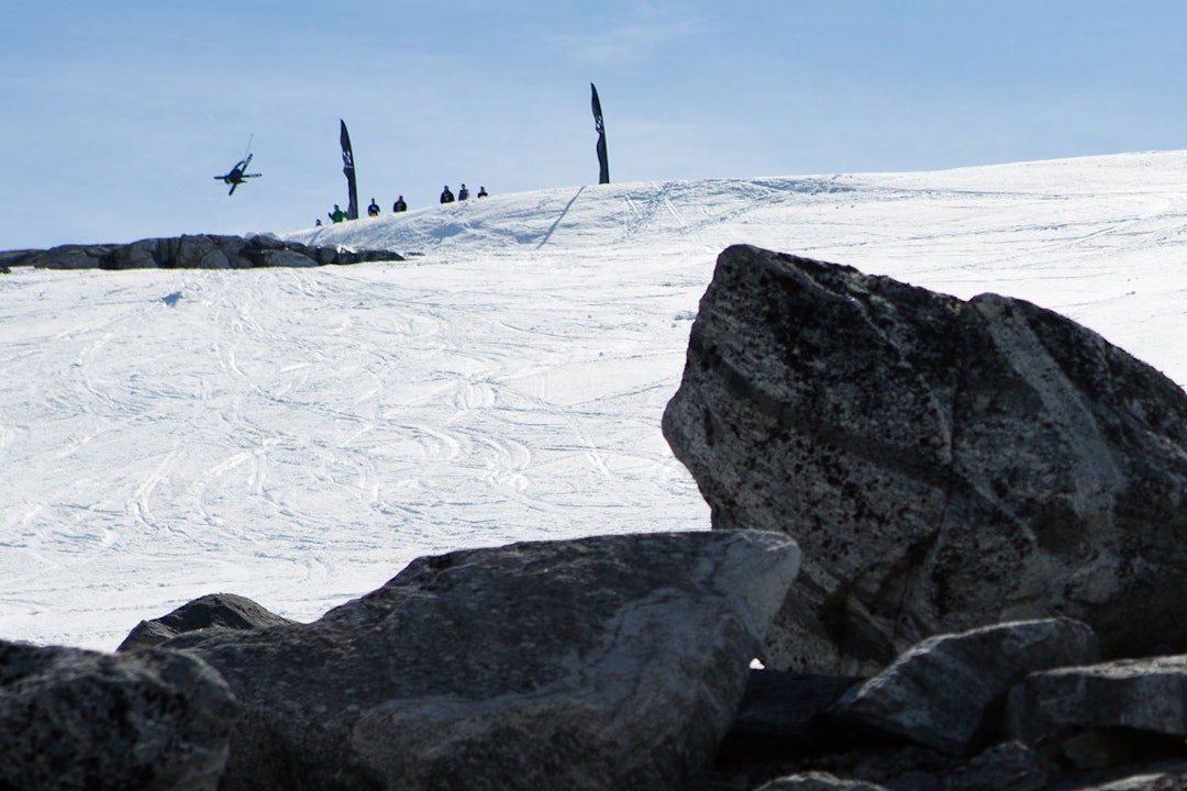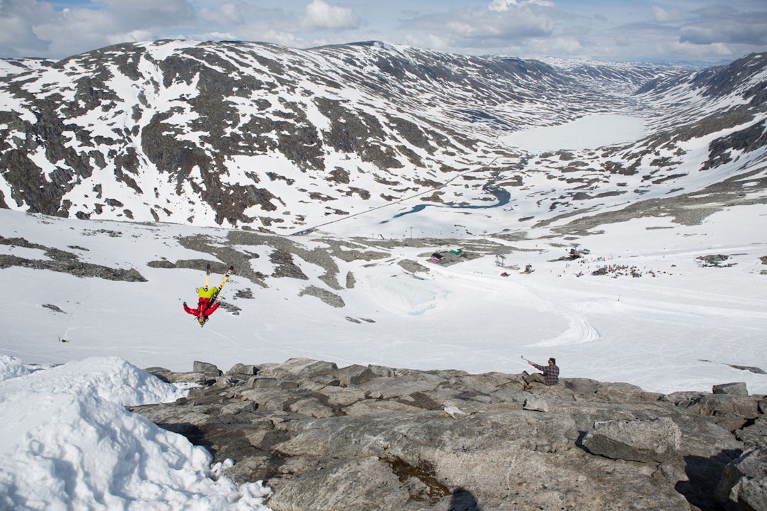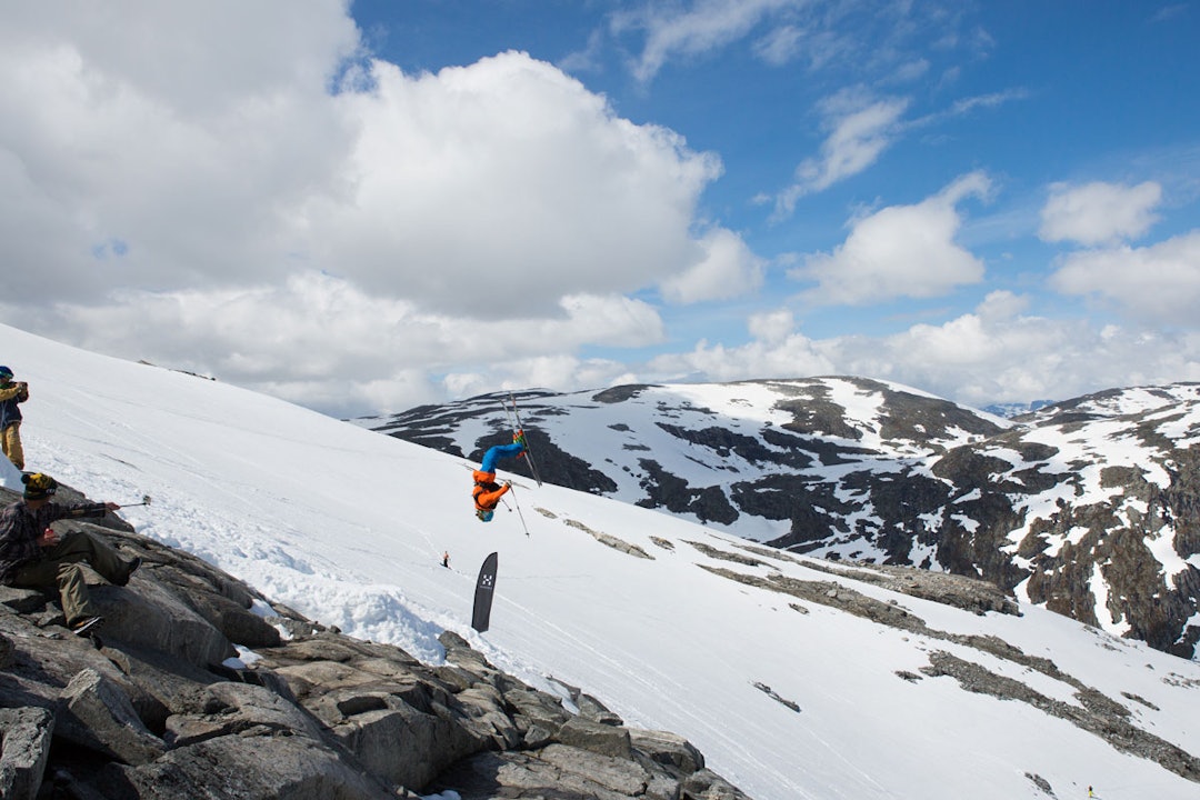 GRENSELØST: Henrik Gangsø landet en perfekt cork 720 ut den første klippen. Deretter satte han en strålende backflip, men på siste hopp ble det kræsj på forsøket på dobbel backflip. Foto: Tore Meirik