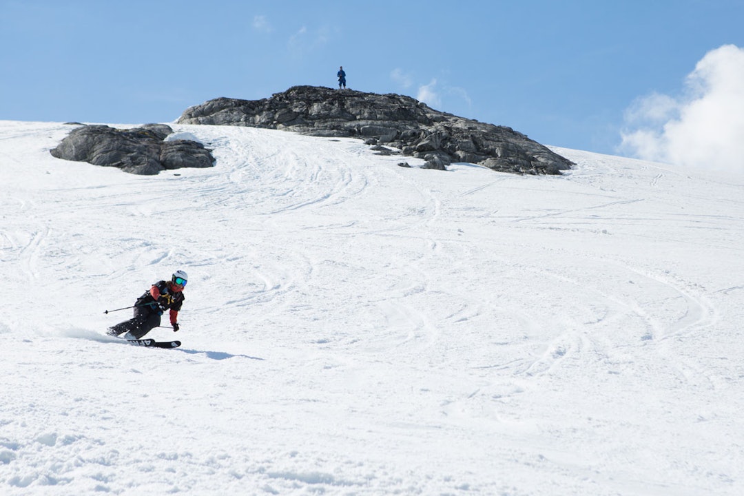 – Geir er kjent for god utforstilling i forbindelse med hucking, og her prøver Asbjørn på det samme som 90-tallshelten min, dog uten å lykkes 100%.