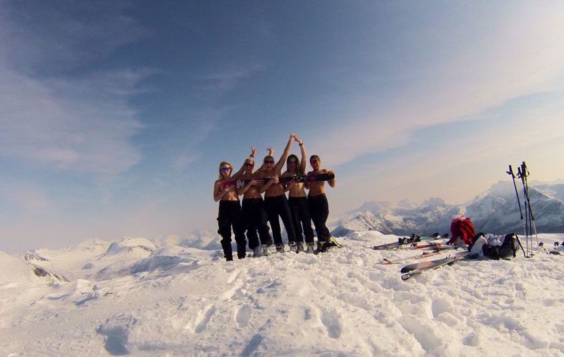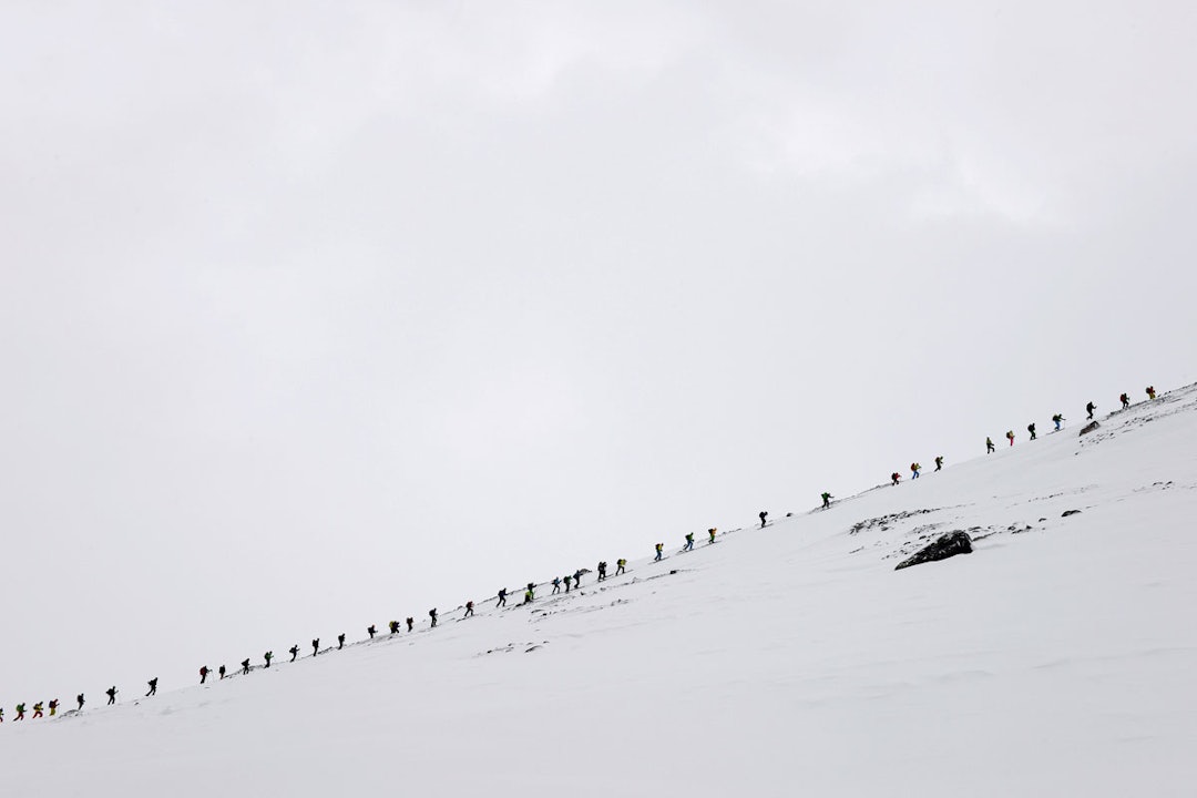 – I Tromsø gjør kafégjestene mer enn bare å sitte inne og drikke... Bildet er fra årets Flyt tur lørdag 5. april i regi av Cafe Flyt i Tromsø. Turen gikk opp mot Ololsatinden i Lyngen. Godt over 50 gjester bidro til et sprudlende liv på utekafeen i nord, skriver Nordahl.
