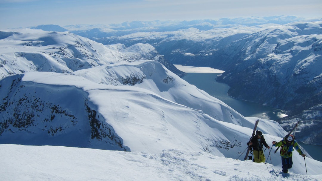 – Martin Fykse og Jørn Erik Toppe runder kanten til toppen av Hesten ved Såtabreen etter bratt oppstigning langs ryggen på vestsiden.