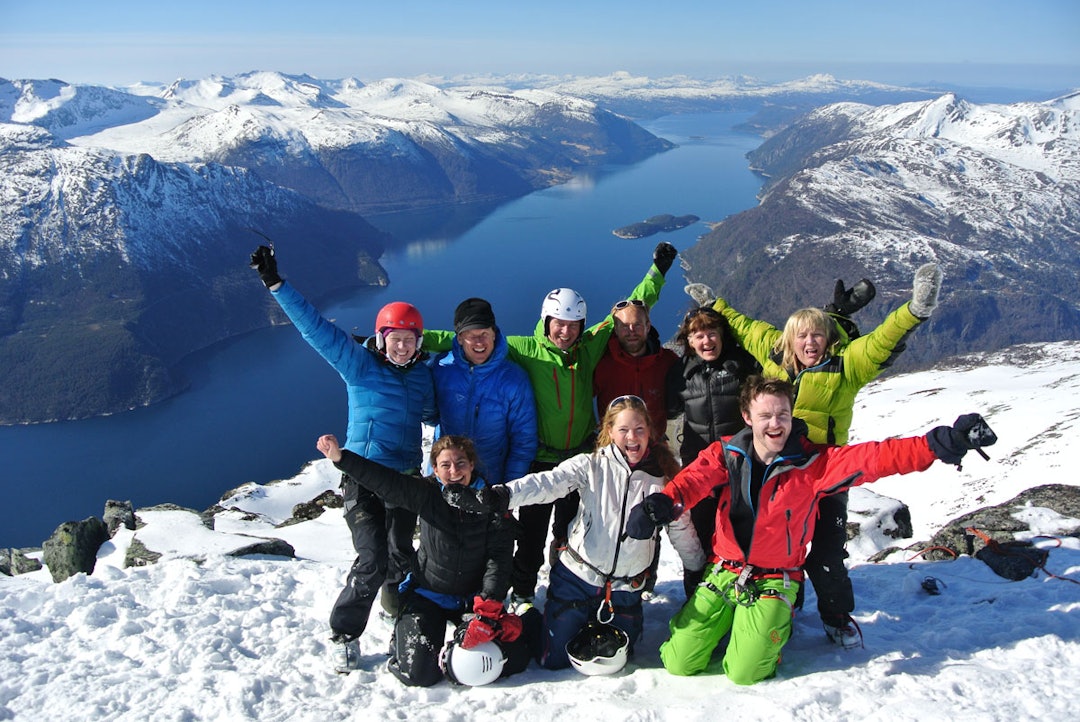 Espen Nordahl jobber med å få folk til fjells. Han lykkes godt da dette bildet ble tatt.