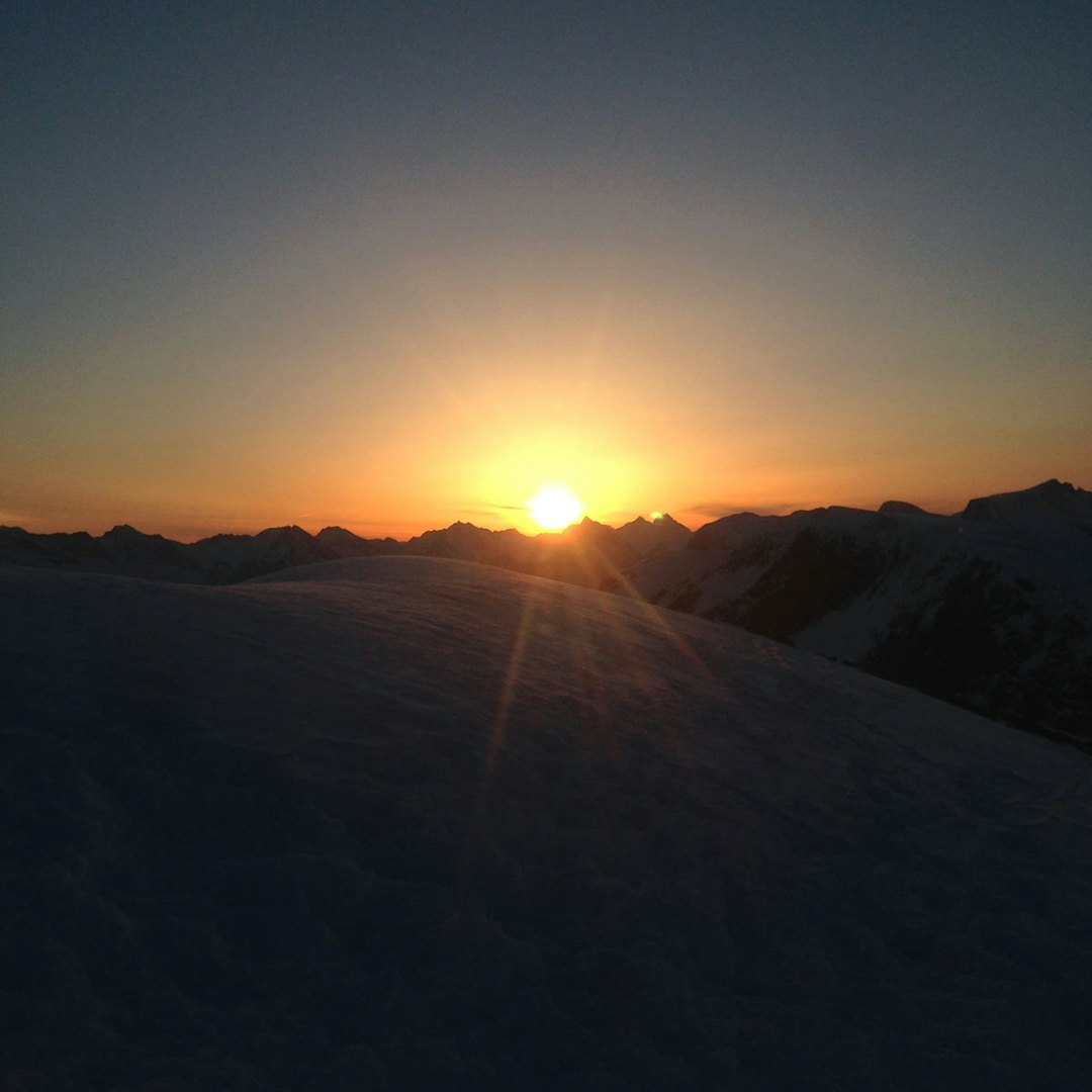 – Soloppgang på toppen av Veirahaldet som oppladning til en fantastisk dag som vakt på XFree i Trollbotnen, skriver han.