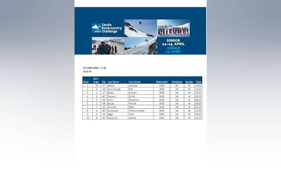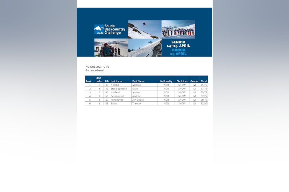 Resultater Sauda BCC 2023