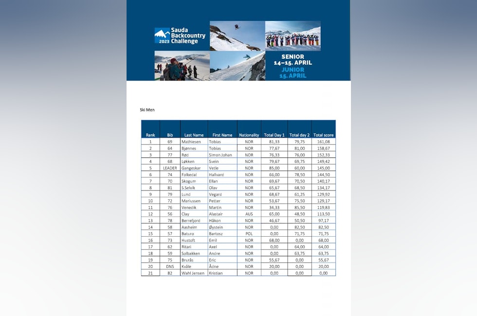 Som en del av Norgescupen i frikjøring var store deler av landets frikjøringselite innen ski og brett samlet til en todagers skifest i Sauda - under den tradisjonsrike Sauda BCC. En konkurranse som ble delt opp i to dager med litt ulikt fokus.