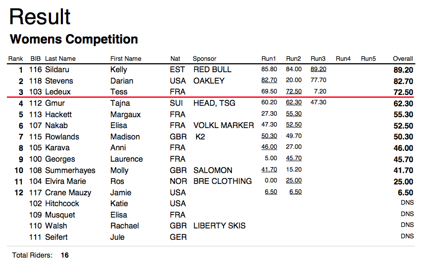Ingen andre norske karer deltok i konkurransen, men i jenteklassen var Elvira Marie Ros på plass. Hun var dessverre uheldig og falt i kvaliken, og valgte å stå over finalen. Kelly Sildaru vant jenteklassen.