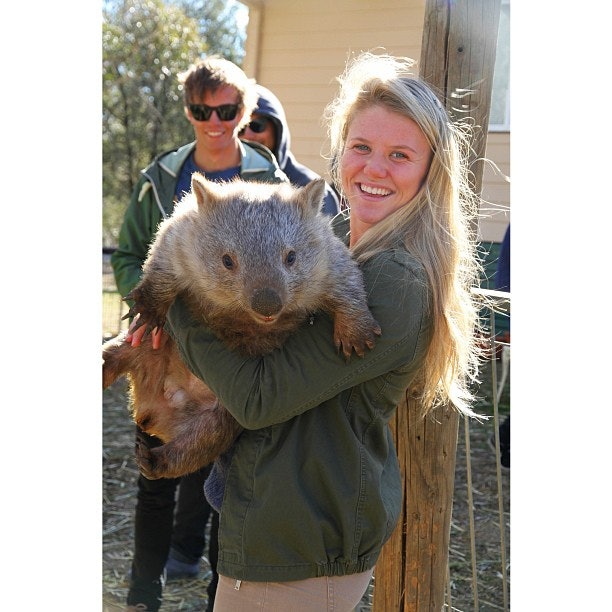 WOMBAT: Tiril Sjåstad Christiansen med en wombat. Bilde fra Tirils Instagram-konto.