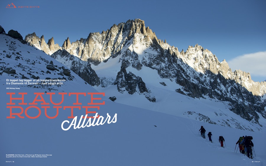 Haute Route #1: Allstars: Bli med Seth Morrison, Julien Regnier, Glen Plake, JP Auclair og et knippe andre A-kjendiser på den legendariske Haute Route mellom Chamonix og Zermatt. Inkludert litt ekstra, eller någgå attåt som det står i bladet.