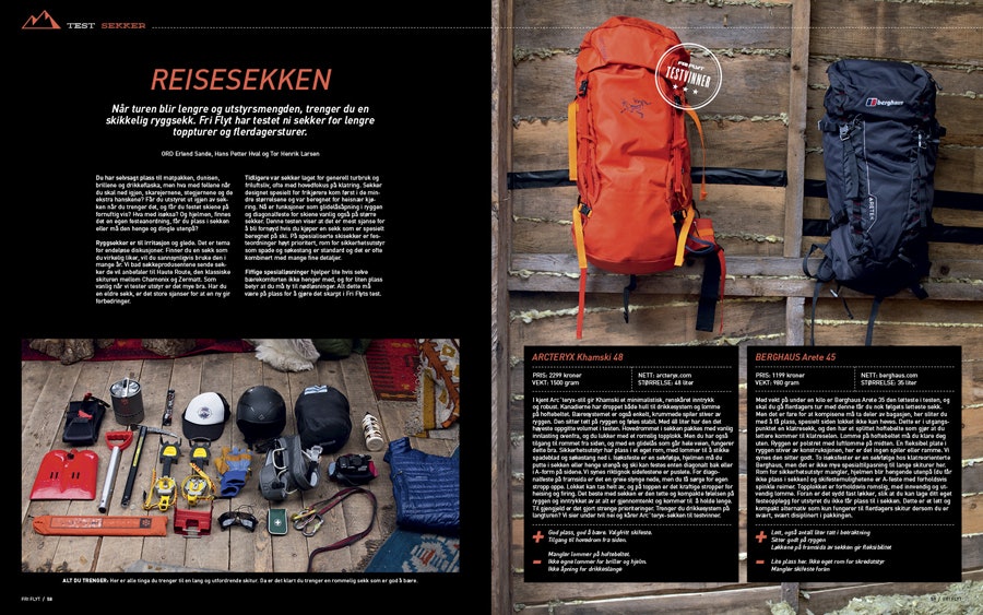 Sekketest: Vi har testa ni tursekker, alle mellom 35 og 45 liter; den optimale størrelsen for de lange toppturene.