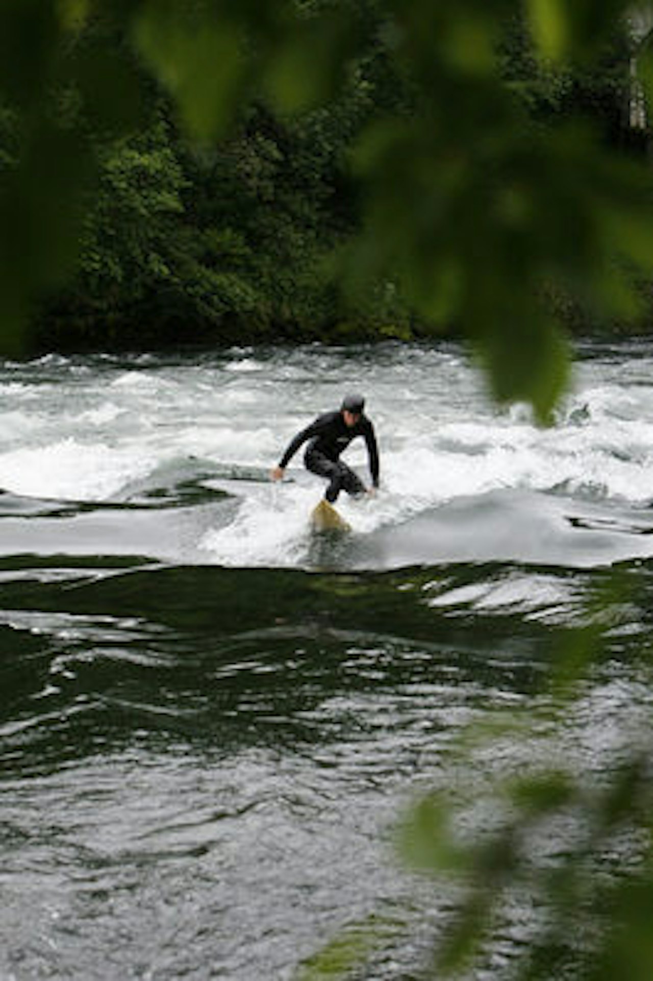 Med en vannmengde på rundt 150-160 kubikkmeter per sekund lå forholdene til rette for god elvesurf ved Bulken i dag. Surfbrett, gjerne av det kortere slaget, en hjelm og våtdrakt er alt du trenger for å få leke deg i enden av Vangsvatnet. David Magnusson var en av mange som kasta seg på brettet i dag tidlig.