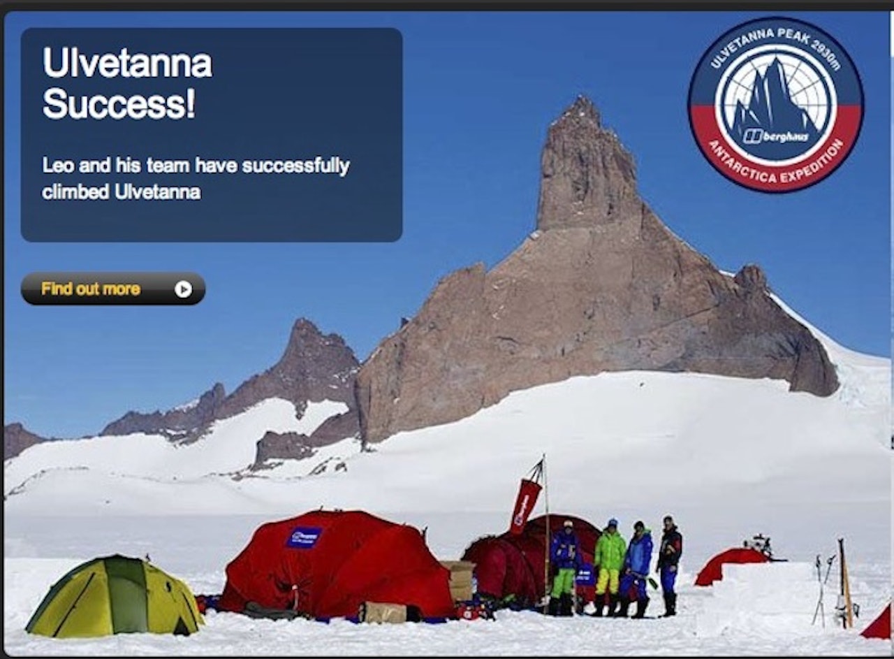 I dag kom meldingen fra utstyrsprodusenten Berghaus om at den britiske ekspedisjonen som har befunnet seg i Dronning Maud Land i Antarktis siden jul, nå har toppet ut en ny rute på Ulvetanna.