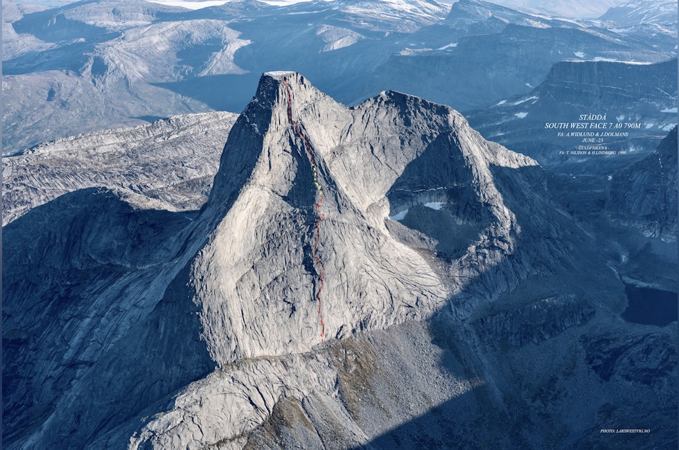 – Jeg har gått den på vinteren to ganger, hvorav en gang solo. Jeg har alltid sett på sørvestveggen, hver gang jeg har vært i området har jeg tatt bilder og studert de etterpå. Og så fikk jeg høre om en fotograf som hadde flybilder av Stetind, og spurte pent om å få de. De var tatt fra ulike vinkler. Og ei linje begynte å titte fram.