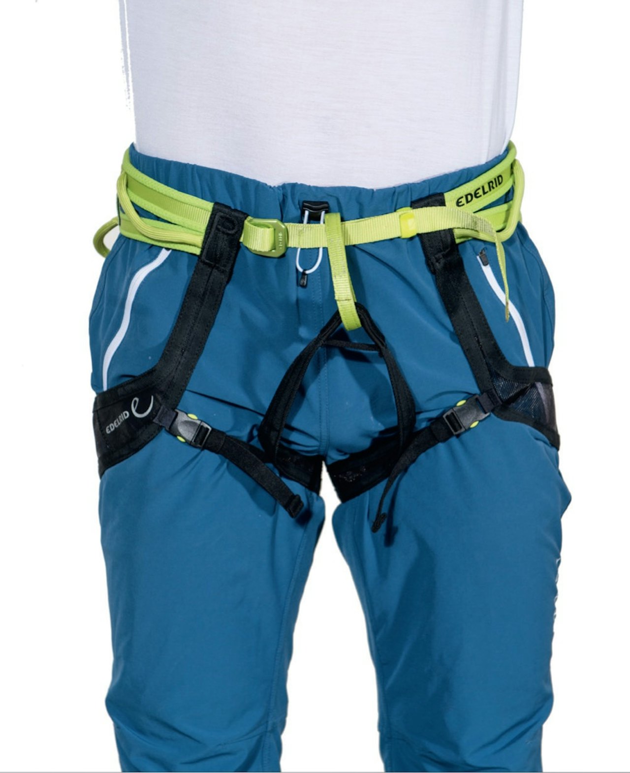Teknisk: Mange detaljer fra det tyske selskapet Edelrid, som har laget klatreutstyr siden 1863. Bre- og skiselen Huascaran har fire utstyrsløkker pluss festepunkt for isskrueholdere, og hoftebeltet er todelt for å fordele trykk. Lårløkkene kan klipses åpne, men hoftebeltet mangler enhåndsstramming.