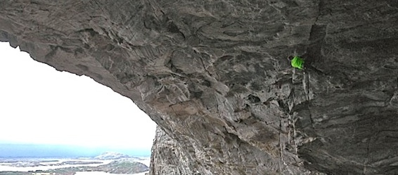 Trondheimsklatreren Lars Audun tok også turen opp til Flatanger. Med erfaring fra tilkomstteknikk i Nordsjøen var det ikke noe å si på bolteferdighetene. Etter bare på en dag i veggen hang Lars Audun 50 meter lengre opp på en fantastisk linje i venstre del av hulen. For den prestasjonen fortjener han utvilsomt «Employee of the day»!