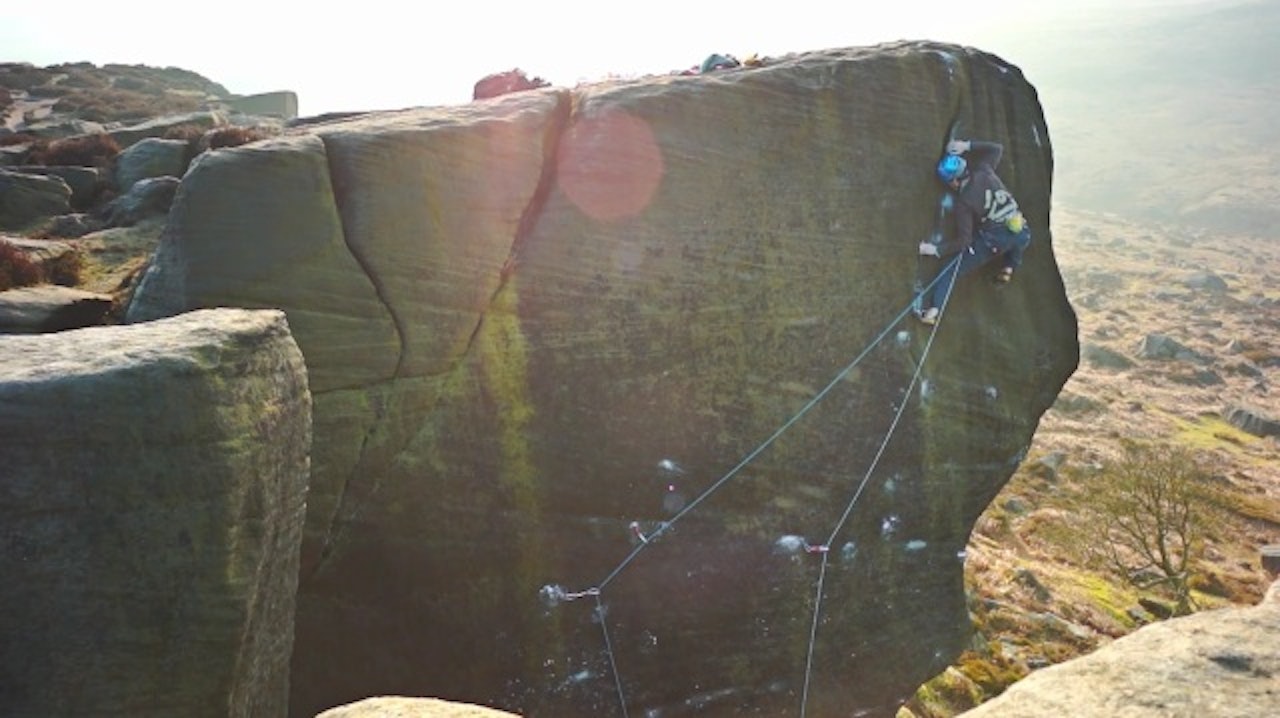 Italienske Michele Caminati er en klatrer med sans for klassiske og flotte linjer. I forrige måned tilbrakte han noen dager i Peak District, og fikk gått flere av de flotte og kjente rutene der. Som den mann av ære han tydeligvis er, er alle bestigningene gjort «ground up», dvs uten å jobbe inn rutene på topptau først. Det betyr selvsagt en ekstra utfordring på de tekniske og sparsomt sikrede gritstone-rutene, og denne lille videoen viser Caminati i god stil på superklassiske Braille Trail, Kaluza Klein og Master's Edge.