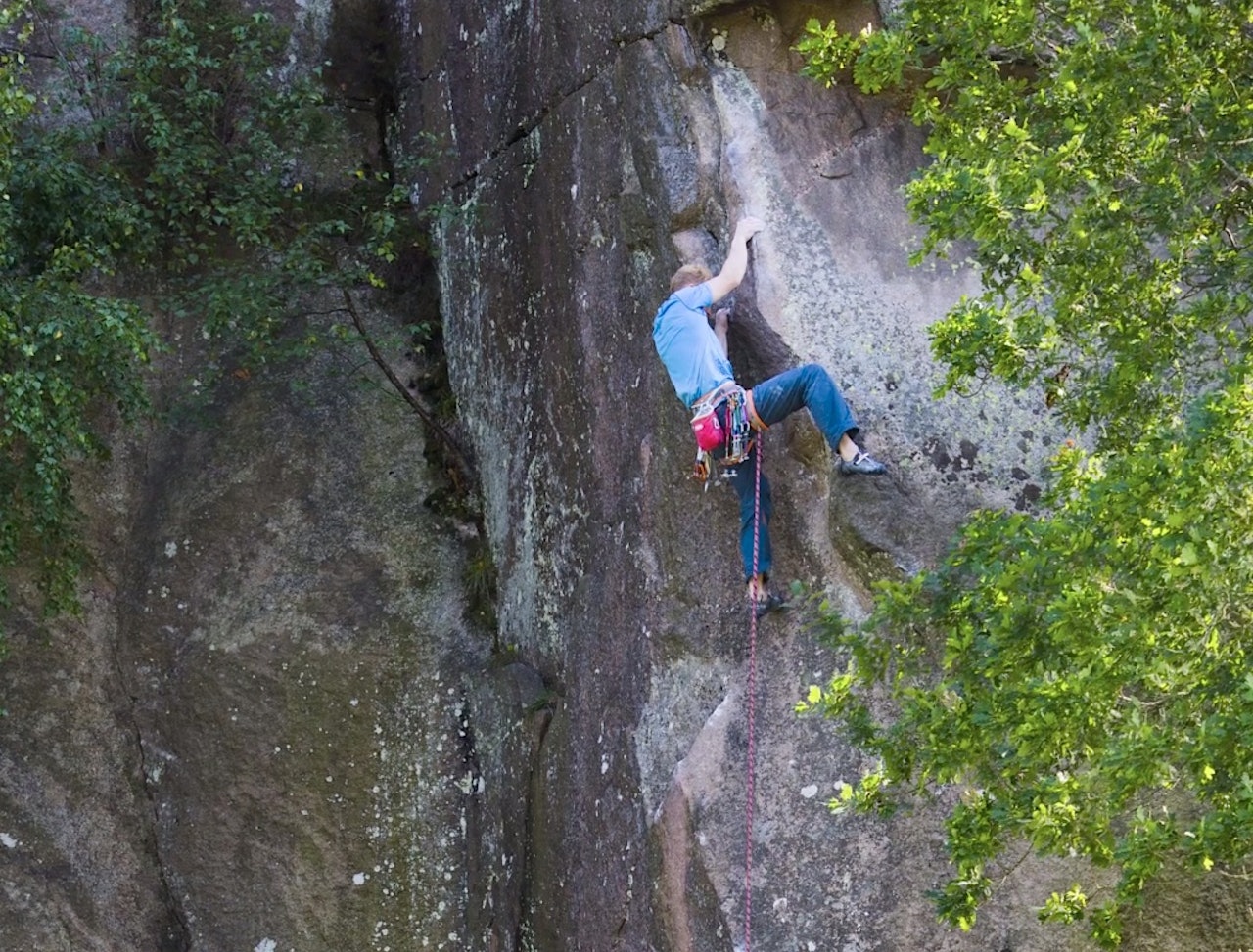 Midtbø klatret like godt hele ruta, forbi cruxet, uten sikring, noe han ikke syntes var helt trygt.