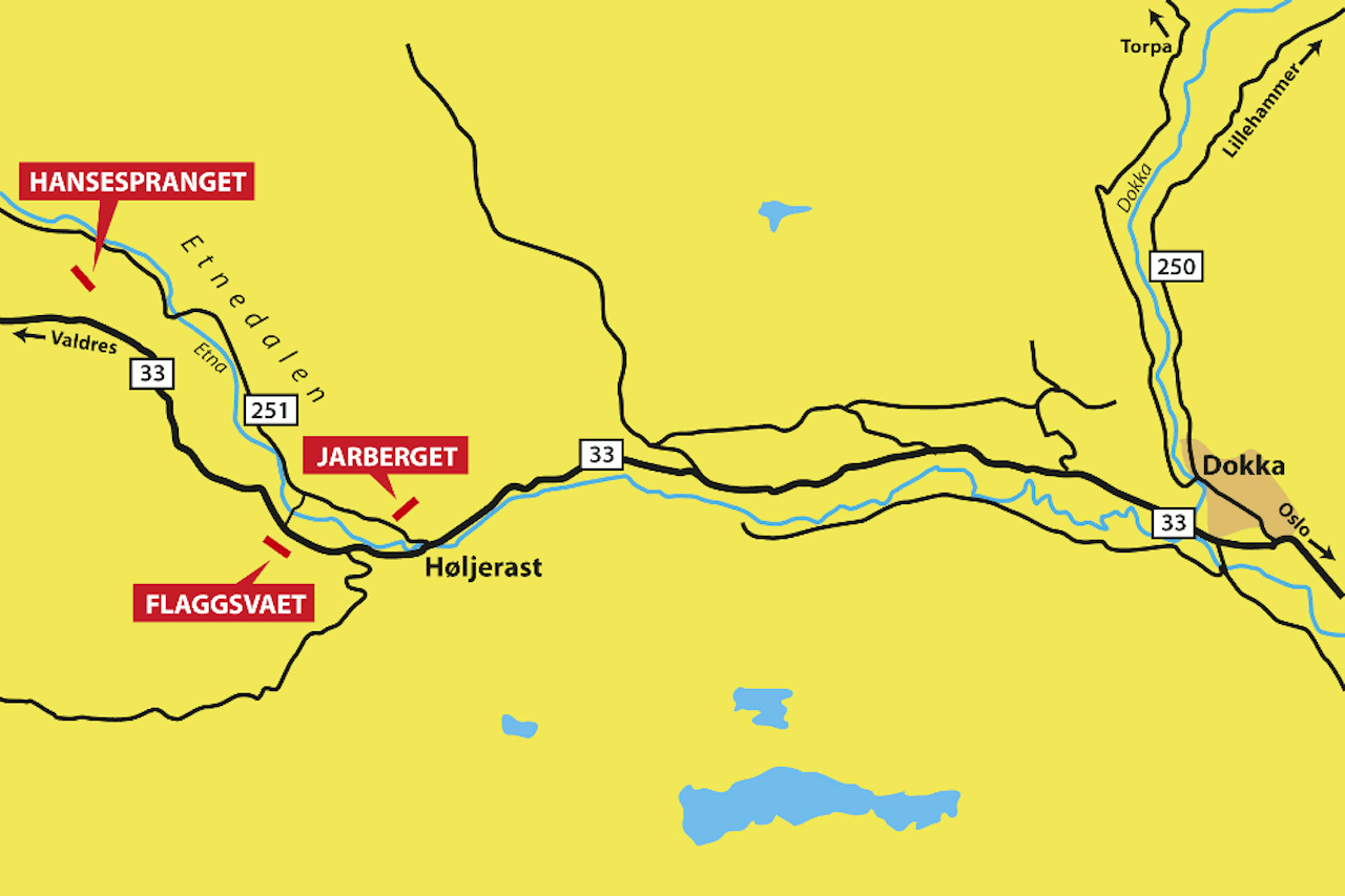 I Valdres, nærmere bestemt ved Dokka, er det flere vegger av høy klasse. Den mest kjente; Tinton – eller Jarberget som den også kalles, har flusst av høykvalitetsruter. Flere andre vegger finnes, blant annet Hansespranget, som er utviklet med støtte av kommunen.