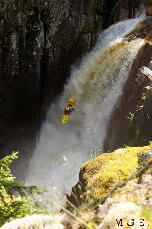 BRATT: Eidsåa er blant de bratteste padleelvene i Norge. Her padler Gerd Serrasolses fossen Big Girl, som ikke skal brukes til å lage strøm. Foto: Micke Ekström