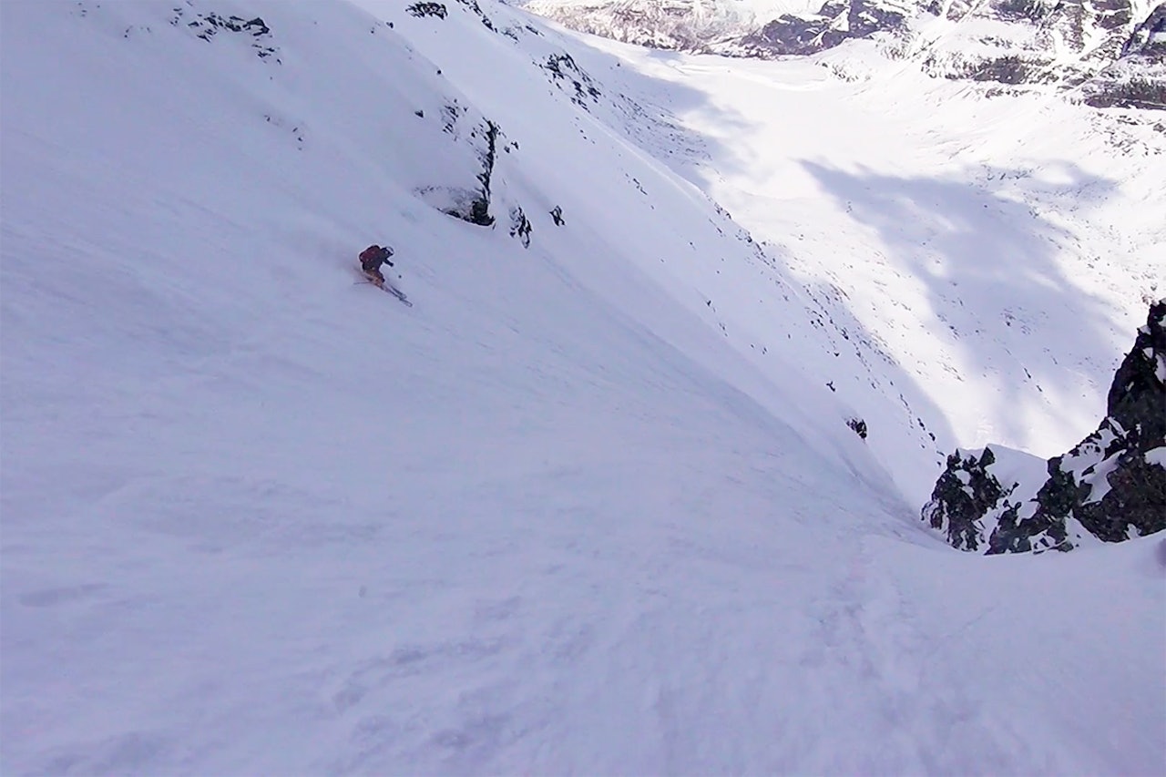 Janette og Erik følger i god stil, vel nede på storflanken blir snøen optimal igjen og det er bare nyte den bratte og luftige nedkjøringen helt til dalbunnen!