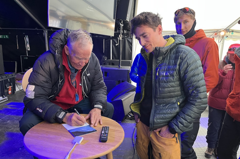 De to legendene Stein P. Aasheim og Odd Eliassen holdt sammen et fredag om de utallige spennende ekspedisjonene til sistnevnte. Han har en så lang merittliste at vi knapt hadde fått plass i denne saken. Men førstebestigningen av Trollveggen og første nordmann på Mount Everest er bare noe av det han har fylt livet med. Eliassen skrev til og med autografer etterpå. Det sier sitt om hvilken standing han har i miljøet.