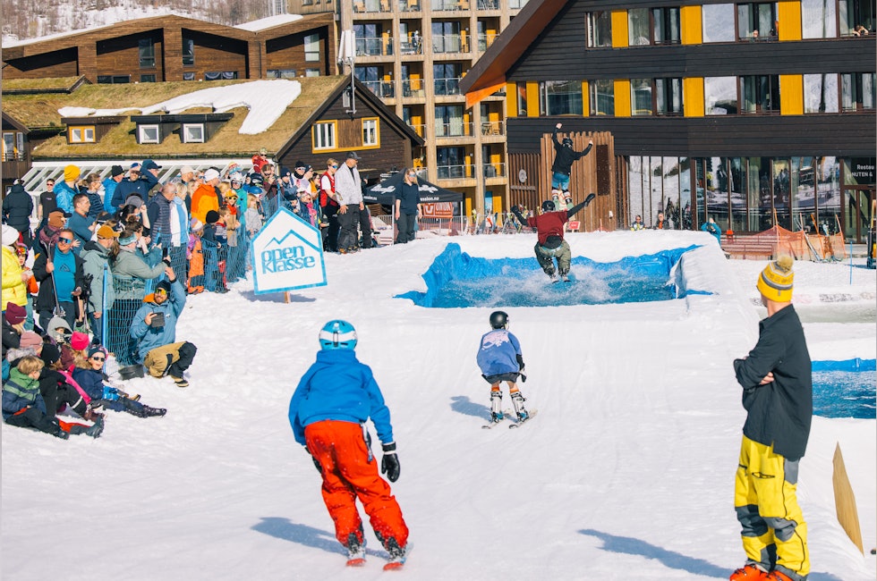 Pond skim var som vanlig en publikumsvinner. En video på Instagram med en deltaker som gaper over første bassenget og lander på ryggen, har allerede fått over 131.000 visninger.