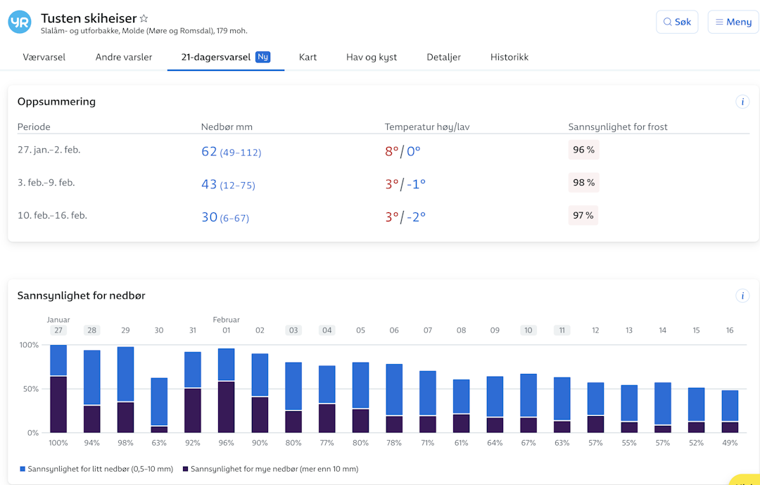 – Vi håper at det nye varselet hjelper folk i hverdagen. Der kan de sjekke om det kommer til å bli kaldere fremover, eller varmere. Eller om det blir våtere eller tørrere, forklarer Støver Jensen.