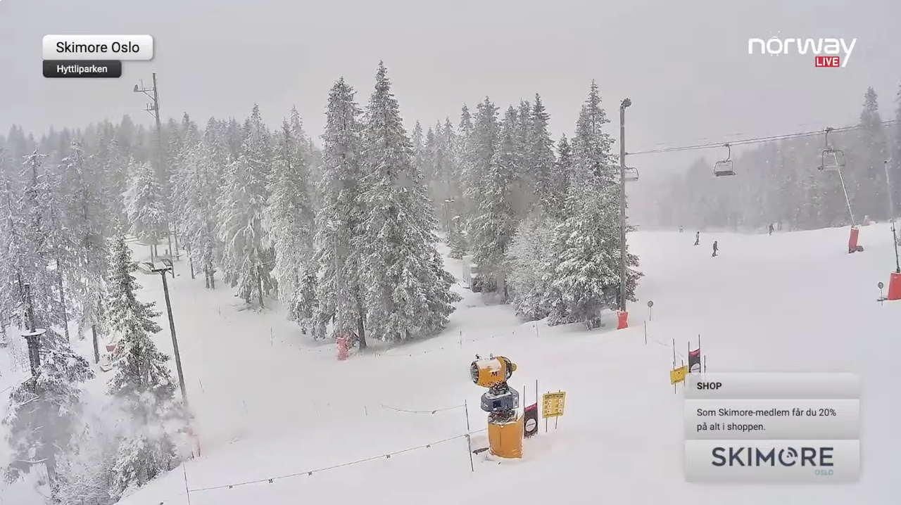 Vinteren gjør et comeback på Østlandet. Her kan du se snøen lave ned - live.