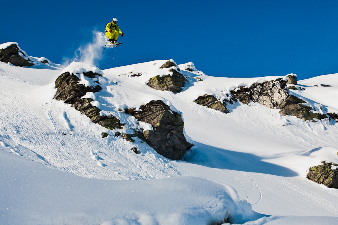Om du har trukket vinnerloddet og kommet borti massive snøfall på solid base, er det et kjempetips å utfordre egne grenser. Finn en, i dine øyne, diger klippe og kast deg utfor.