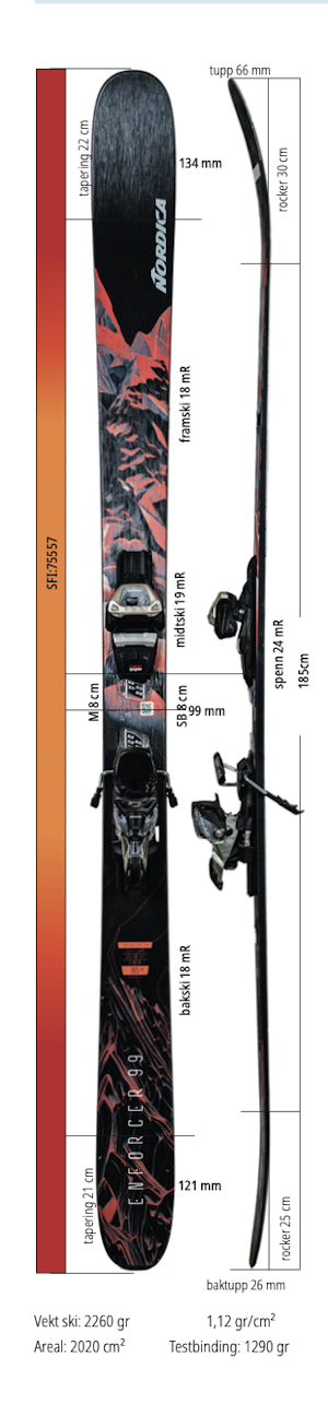 Nordica Enforcer 99 er et godt kompromiss mellom kantgrep og svingvilje i preparerte bakker og frikjøringsegenskaper i villsnø – akkurat slik vi ønsker oss i en all mountain-ski.