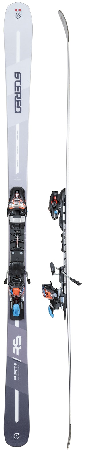 Stereo Piste RS mer som en frikjøringsski enn en vass racingski i dette selskapet. Den norskdesignede utfordreren svinger mykt og fint, men er tregere fra kant til kant og gir mindre respons enn de andre. Vi savner draget inn svingen. På den annen side ligger den rolig og stødig, og synes du den svinghissige racingfølelsen blir masete, kan dette funke fint. Men da har du på den annen side en rekke bredere all mountain-modeller å velge mellom. Vi er altså ikke helt overbevist, men hvis du er ute etter litt av den samme følelsen som på frikjøringsskiene, bare med bedre kantgrep i preparerte løyper, kan Stereo Piste RS gi mange fine skidager.