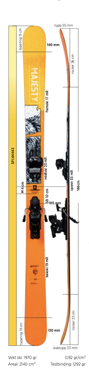 Majesty Dirty Bear XL har en del uvanlige designgrep, men rarest er monteringspunktet - her bør bindingene settes bak anbefalt sted.