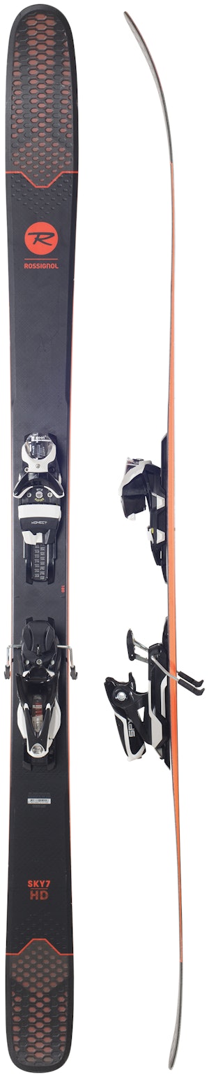 7-serien var ny forrige gang vi testet ski på Stranda, for snart fem år siden. Siden den gang har den blitt hyppig, men svakt oppdatert. Sky 7 HD er en glassfiber sandwich med torsjonsstiving i karbonfiber. Det som kjennetegner skia er veldig myke tupper i begge endene, høy rocker i framskia. Sky 7 HD har testens laveste egenvekt.