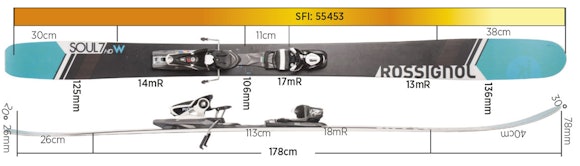 De spesielle tuppene og designet er tatt med videre fra den gamle 7-serien, men denne utgaven av Rossignols frikjøringsski har fått ny konstruksjon med karbonstrenger. Denne utgaven har innsving mot tuppene, et høyt spenn og like lange rocker- som taperingsområder. Soul 7 W er en bred ski i dette selskapet, og konstruksjonen er litt tyngre enn snittet i testen.