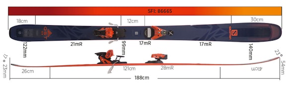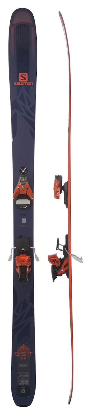 QST99 er minst i den nye frikjøringsserien fra Salomon. Dette er en ganske asymmetrisk form fra Salomon, det er vesentlig mer innsving og rocker i framskia. Mindre innsving i bakskia, som også er ganske stiv. Testkategoriens bredeste framtupp.