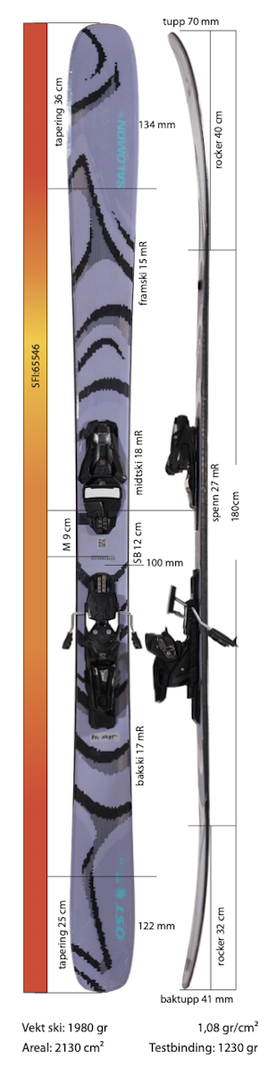 Salomon QST 100 er en morsom og leken frikjøringsski som overrasker med god flyt selv om arealet er temmelig beskjedent.