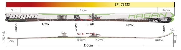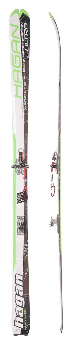 Med bindingene på er dette den letteste kombinasjonen av ski og binding vi noensinne har testet, selv om Fischer Transalp 75 er litt lettere uten binding. Skiene er små både i vekt og areal, med kort svingradius, stiv baktupp og veldig myk framski. Ultra er Hagans rimelige alternativ til racingski, og har mindre breddeforskjell foran og bak enn Hagans mer folkelige Wai-serie.