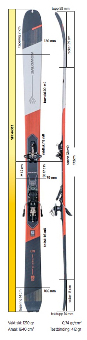 Skia har lavt spenn, lite rocker og samme svingradius som MTN 80 Carbon: Mye innsving bak og ganske lite foran, men denne skia har litt mer spenn.