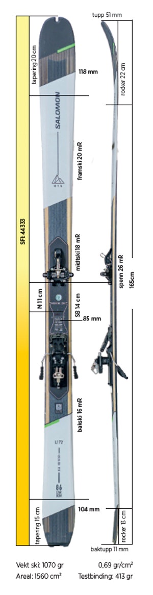 86 er den nest smaleste i Salomons nye MTN-skikolleksjon, og også denne kommer i Pro- og Carbon-versjon, hvor sistnevnte er lettest og dyrest.