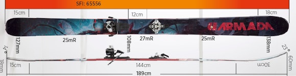 Armada kommer til toppturtesten med det som framstår som en rendyrket frikjøringsski. Her er det ikke gjort noe for å redusere vekta. Invictus er ganske tradisjonelt bygget, spesielt til Armada å være, med langt skjær og lite taper. Den har også tradisjonelt spenn i hele lengden, med unntak av den lille rockeren eller skal vi heller si lange tuppen foran. Den har forholdsvis lang svingradie krappere innsving mot tuppene.