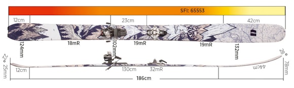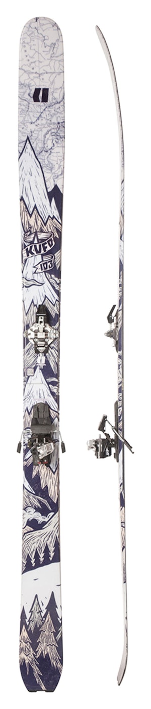 Denne skia er ekstremt asymmetrisk – veldig atypisk Armada: Kufo 103 har voldsomt setback som plasserer det smaleste punktet under hælen. Framtuppen er kraftig tapert, mens skjæret går helt ut bak. Kraftig rocker i framskia, spenn helt ut bak. Stiv baktupp, myk framtupp. Vektmessig ligger Armada litt over midten på treet i dette selskapet.