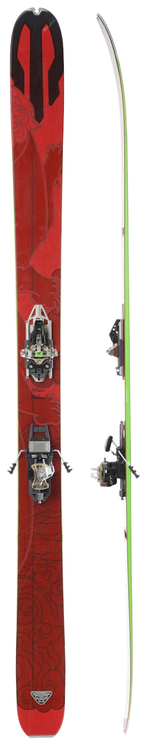 Dynafit har laget kraftigere støvler og bindinger de siste årene, men for skiene har lav vekt vært det viktigste salgsargumentet. Med Hokkaido går de helt motsatt retning, med en fullblods frikjøringskonstruksjon og tilhørende høy vekt. Disse brede skiene er også suverent tyngst i testen. Her får du lang rocker eller negativt spenn gjennom hele skien, lang svingradie og relativt stiv fleks.