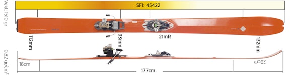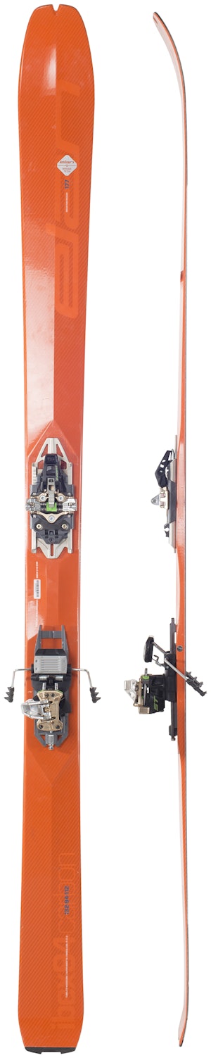 Den rimeligste og tyngste modellen i Elans nye Ibex-serie (som inkluderer en sammenleggbar variant!) er blant testens største og tyngste ski. Likevel har den ekstremt myk framski. Ibex Carbon har hele 20 centimeter setback som gir temmelig stor forskjell på fram- og bakski. Innsvingsradiusen er jevn og gjennomsnittlig.