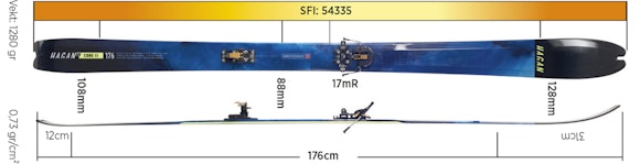 Ny modell fra Hagan, som er betydelig lettere enn Boost – og en del smalere. Jevnt skjær med 17 meter innsvingradius gjennom hele skia skiller seg litt ut i dette selskapet. Akkurat som Boost har den litt rocker foran, men ingen bak. Fleksen er myk, særlig i framskia, og skia har i det hele tatt litt jevnere form og overganger mellom rocker og taper enn vi er vant til fra Hagan.