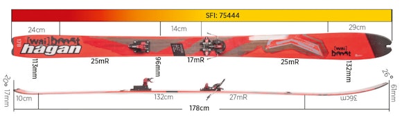 Wai Boost er den nest bredeste modellen i Hagans Wai-serie. Lite innsving i tuppene, mest på midten. Stiv baktupp og myk framski, langt setback og mye rocker i framskia sammen med ingen rocker i bakskia gjør dette til en veldig asymmetrisk geometri. Ganske lav egenvekt.