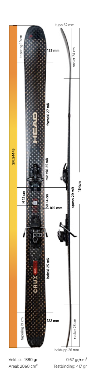 Den bredeste skien i Heads nye Crux Pro-serie lykkes godt i å kombinere lav vekt med kjøreegenskaper - dette er svært gode ski i kategorien bred toppturski.
