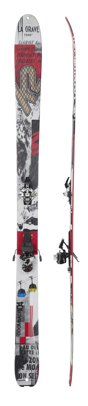 K2 har senket vekten på skiene en god del på den siste generasjonen toppturski. Nå er de plutselig nede på midten av vektskalaen. Mye vekt er spart ved å bytte en del av glassfiberforsterkningen med karbonfiber og bruke tynnere såler. Denne modellen har kort svingradie i framskia og og lengre svingradie fra midten og bakover. Coomback 104 har lang rocker i framskia, relativt stiv bakski og mykere framski. Finnes også i en bredere versjon med midtbredde 114 mm.