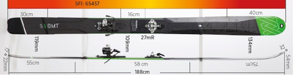 Völkl fortsetter der de slapp med fjorårets Katana W-Verks. BMT 109 har en annerledes geometri, med mer taper. I denne utgaven er karbonkonstruksjonen også blitt lettere, selv om de ennå ikke kan sies å revolusjonere toppturkategorien vektmessig. Den har flatt spenn i midtpartiet og lang rocker foran og bak. Svingradien ligger jevnt på 27 meter hele veien. Langt setback gjør at bakskia blir smal i forhold til bakskia. Sammenlignet med vår skala er fl eksen mykest på midten for forholdsvis stiv foran og bak.