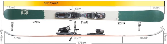 Slat er en av testens bredeste modeller. Den er tung i seg selv, i tillegg ble den levert med en veldig tung bindingsrigg. Myke tupper, myk framski. Skia har ganske lite innsving og langt skjær i forhold til lengden.