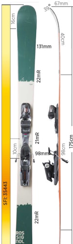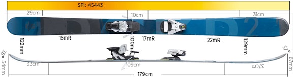 Dette er ikke en rein parkski, det er testens mest frikjøringsorienterte modell. Et så langt setback er ikke vanlig på parkski, men det blir kompensert av mye innsving i bakskia og kort tapering bak, slik at skia ikke får ganske liten breddeforskjell på fram- og bakski. Myk framtupp med mye rocker, litt lavere egenvekt enn mange av de andre modellene i kategorien.