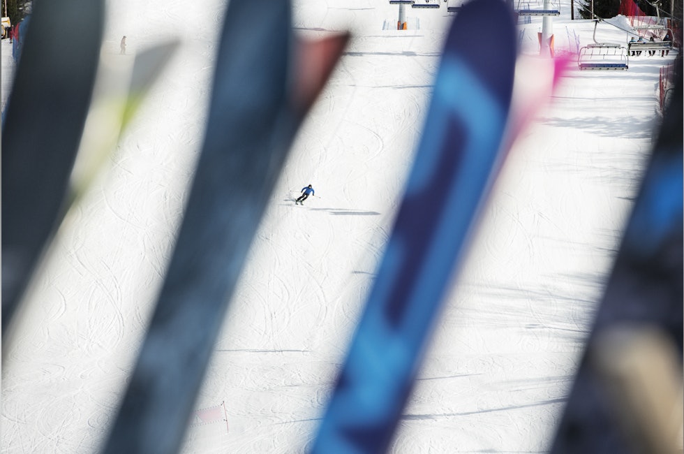 I bunnen av Wyllerløypa i Oslo står det 10 par ski med en tape-bit påskrevet ALL, for all mountain. Reinton har et team med fem drevne skikjørere som sjekker inn og ut med nye skipar.